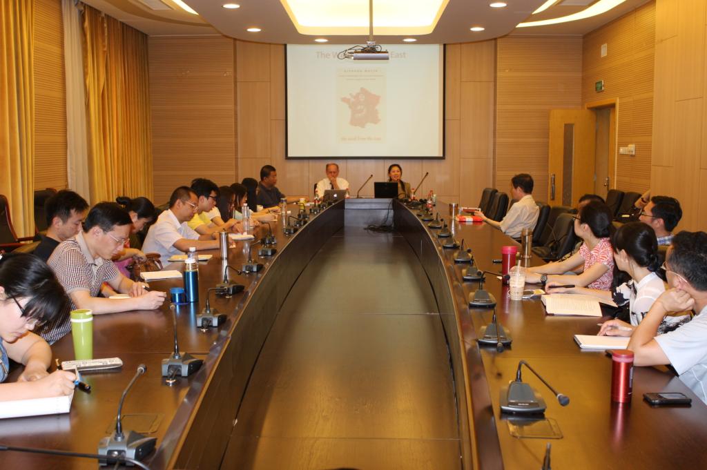 2014年5月26日下午,beat365英国官方网站“百川讲堂”第四期在学术会堂603报告厅隆重举行,本期有幸邀请到国际著名左翼思想家、纽约城市大学研究生中心教授理查德•沃林(Richard Wolin),为beat365官网师生作了关于“毛泽东的影响:东风西渐”的专题讲座。讲座由beat365英国官方网站副院长陈文娟副教授主持,蔡大梁老师担任翻译。