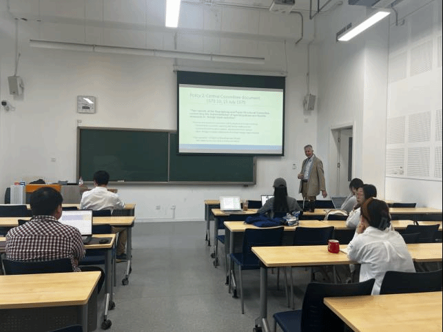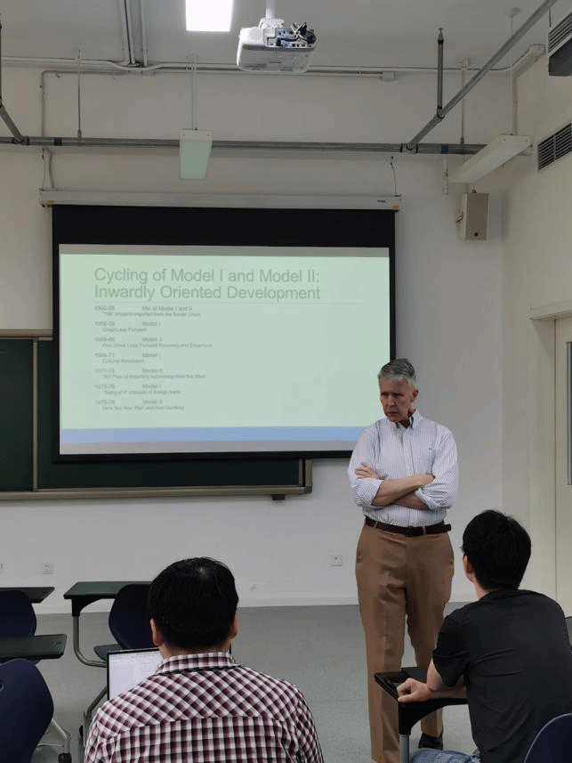 本次系列授课分别在沙河二教112和216教室进行,博士生参加。课程以“中国第三条经济发展道路”为主题,教授以其独特的视角,介绍了中国50年代到90年代之间的经济发展,以不同领导人对经济增长政策的认识为切入角度,重点分析面对不同阶段,领导人在经济方面的核心思想以及政策主张。