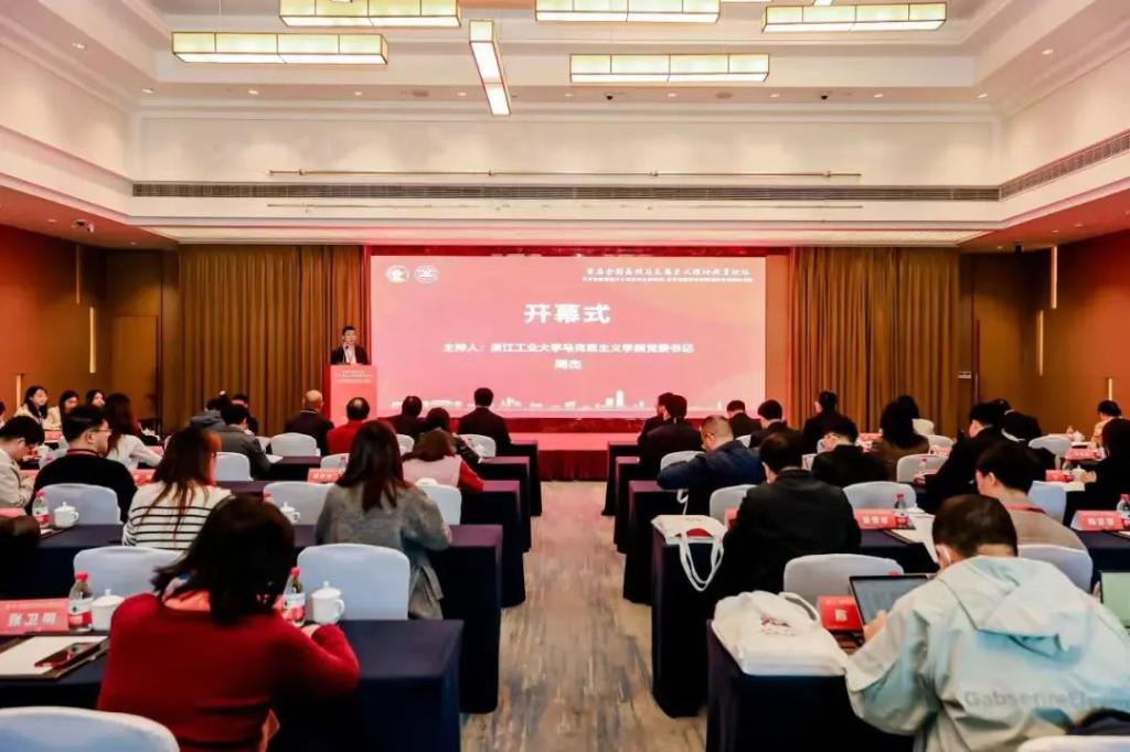 武汉大学主流意识形态研究院院长、弘毅特聘教授项久雨,东北大学中国式现代化研究院院长田鹏颖教授,山东大学beat365英国官方网站院长张士海教授,上海交通大学beat365英国官方网站院长邢云文教授,beat365英国官方网站院长黄刚教授,中国石油大学(华东)beat365英国官方网站院长张瑞涛教授,浙江工业大学党委委员、宣传部部长姜少飞教授等领导和专家学者出席论坛。来自国内高校的120余位专家学者和研究生代表参与此次论坛。浙江工业大学beat365英国官方网站党委书记周杰主持论坛开幕式。
