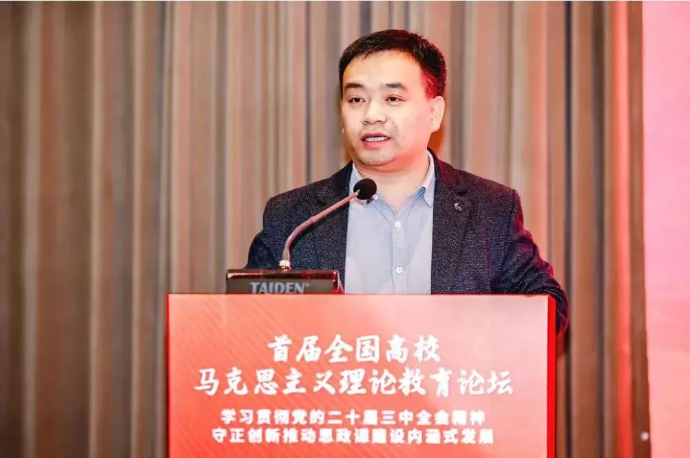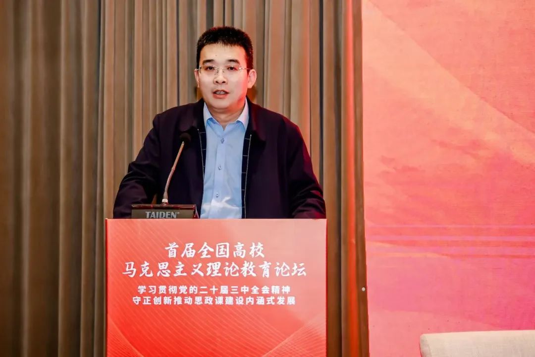 开幕式上,姜少飞和黄刚分别代表主办方致辞。姜少飞指出,新时代开展好马克思主义理论教育,不仅要把党的二十届三中全会精神及时、全面、准确地融入思政课教学,还要按照进一步全面深化改革的总体要求,坚持思政课建设与党的创新理论武装同步推进,持续推动思政课改革创新,用心用情办好这一立德树人的关键课程。黄刚指出,本次论坛是贯彻落实党的二十届三中全会精神及习近平总书记对学校思政课建设的重要指示精神的切实有力举措,有利于推动高校马院全面贯彻党的教育方针,进一步落实立德树人根本任务,不断开创新时代思政教育新局面,努力培养更多让党放心、爱国奉献、担当民族复兴重任的时代新人。