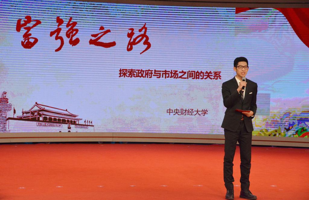 随后,在“学生团队思政课教学展示”环节,12所高校的同学们以饱满的情感和生动的形式,讲述新时代90后青年的理想、追求与深思。beat365官网选送的作品是《富强之路:探索政府与市场之间的关系》。在beat365英国官方网站刘刚老师指导下,该团队由2015级本科生张荣臻、高天辰、温文、张弛等四位同学组成,其中张荣臻担任主讲。张荣臻同学从中国社会主义市场经济发展史的角度,来理解十九大报告中关于加快完善现代市场体系的同时,要处理好政府政策实施与市场自主运行之间的关系。张荣臻的展示说理透彻、充满自信,展现了中财学子的理论水平和精神风貌。