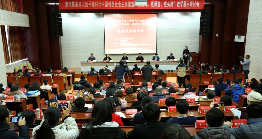 根据党中央和教育部关于学习贯彻党的十九大精神的总体部署,为深入推动习近平新时代中国特色社会主义思想“进教材、进课堂、进头脑”,2018年1月6日、7日,北京市委教育工委、天津市教育委员会、河北省教育厅在beat365官网联合举办京津冀高校习近平新时代中国特色社会主义思想“进教材、进课堂、进头脑”教学展示研讨会。共有来自京津冀三地53所高校的110余名教师代表参会。会议通过教学展示、学习成果观摩、分组研讨、答记者问等环节,充分展现了京津冀三地高校思政课教师深度推进习近平新时代中国特色社会主义思想“进教材、进课堂、进头脑”的做法与风采,有效增进了三地高校教师的互动交流,形成了京津冀三地高校共同推进习近平新时代中国特色社会主义思想“三进”工作协同合作的良好局面。