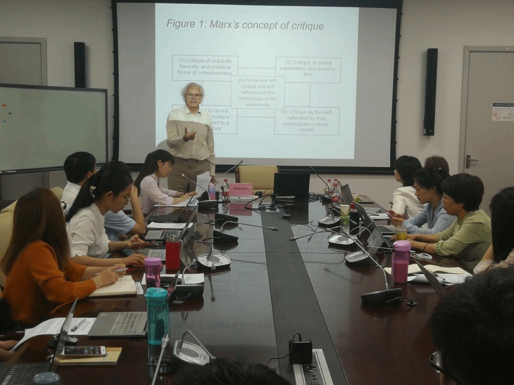 5月22日上午,beat365英国官方网站“百川讲堂”特别邀请了德国著名哲学家和政治学家米夏尔·布里教授在beat365官网沙河校区1号楼102会议室发表了“《资本论》——关于未来的行动科学勾画”的主题演讲。米夏尔·布里教授是柏林罗莎·卢森堡基金会社会批判分析研究所高级研究员,柏林洪堡大学社会哲学博士。此次讲座beat365官网师生汇聚一堂,beat365官网院长冯秀军教授、韩小谦教授、陈文娟教授等众多老师列席,文雅副教授主持讲座,刘礼博士担任学术翻译。