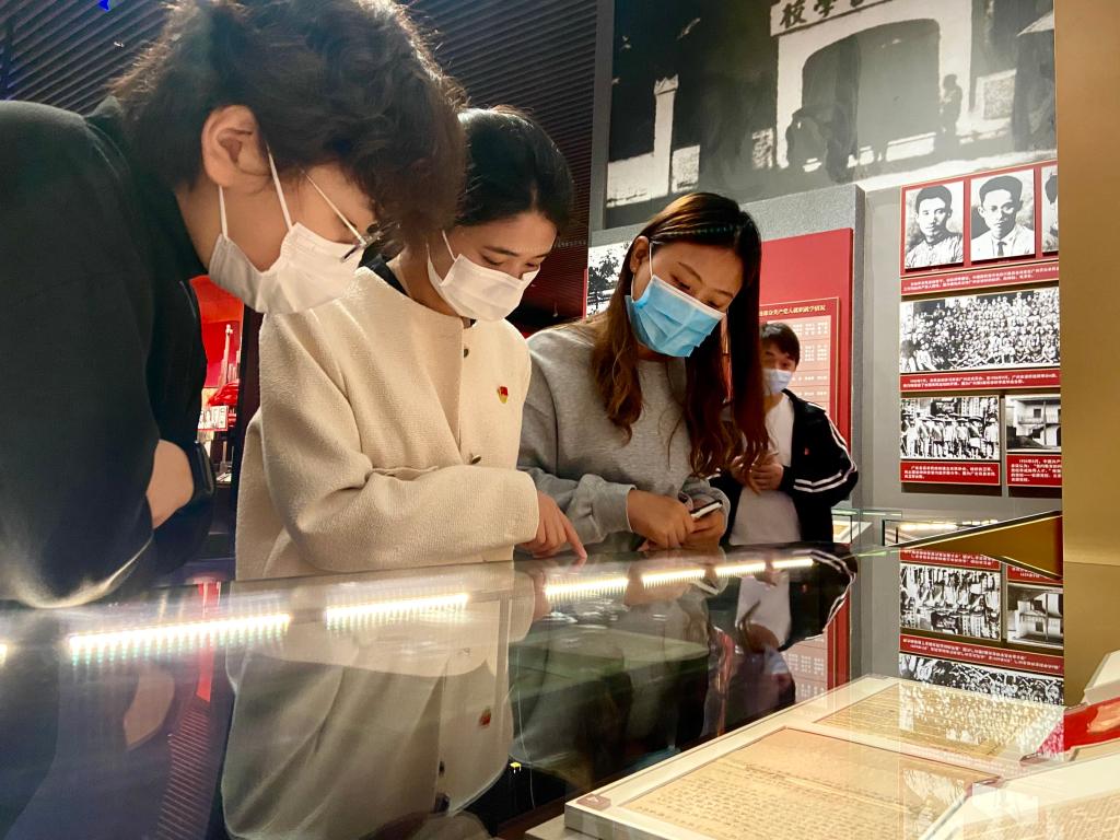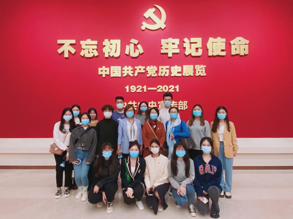 2021年9月24日,beat365英国官方网站20名师生在院长冯秀军、副院长黄刚老师的带领下,前往参观“‘不忘初心、牢记使命’中国共产党历史展览”。
