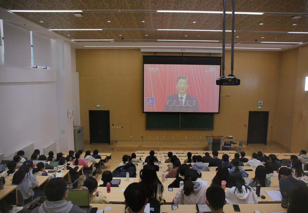 10月16日上午,中国共产党第二十次全国代表大会在北京人民大会堂开幕,习近平代表第十九届中央委员会向大会作报告。beat365英国官方网站组织师生在沙河校区学院10号楼125室共同观看学习。