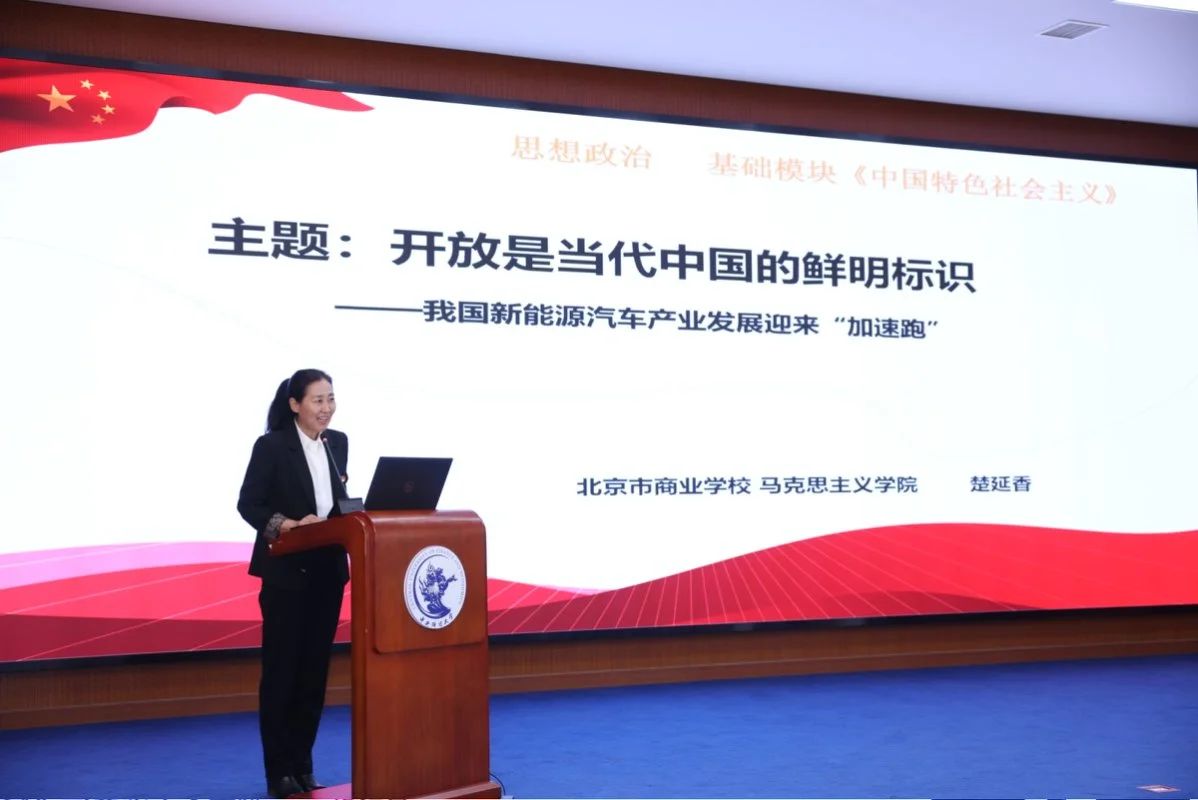 北京市商业学校beat365英国官方网站思政课教师楚延香以《开放是当代中国的鲜明标识——新能源汽车迎来“加速跑”》为题,围绕“学习《习近平经济文选》第一卷,一体推进习近平经济思想融入思政课教学”这一主题,从教学整体设计、教学实施过程、教学反思改进三个维度展开教学分享。教学设计上,秉持以教师为主导、学生为主体的理念,通过“议题三线六环节”有序推进教学;在政治认同方面,引导学生运用马克思主义立场观点,探寻“对外开放背景下中国新能源汽车产业的发展之路”,从而理解开放是国家繁荣发展的必由之路,增进对我国对外开放基本国策的认同与拥护;在职业精神培养上,组织学生对“新能源汽车产业自立自强VS对外开放,谁更重要”话题展开辩论,使其正确应对经济全球化竞争中的机遇挑战,坚定学好技术技能、报效国家的职业理想信念,培育不断创新、追求卓越的工匠精神;在公共参与能力提升上,借助各类学生活动,提高学生解决实际问题的能力,使其能够有序参与公共事务,勇于担当社会责任。
