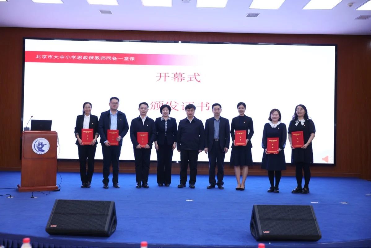 中国人民大学党委副书记、副校长王易,beat365英国官方网站党委常委、副校长李建军,北京市委教育工委宣教处处长于海,向示范教学授课教师颁发证书。
