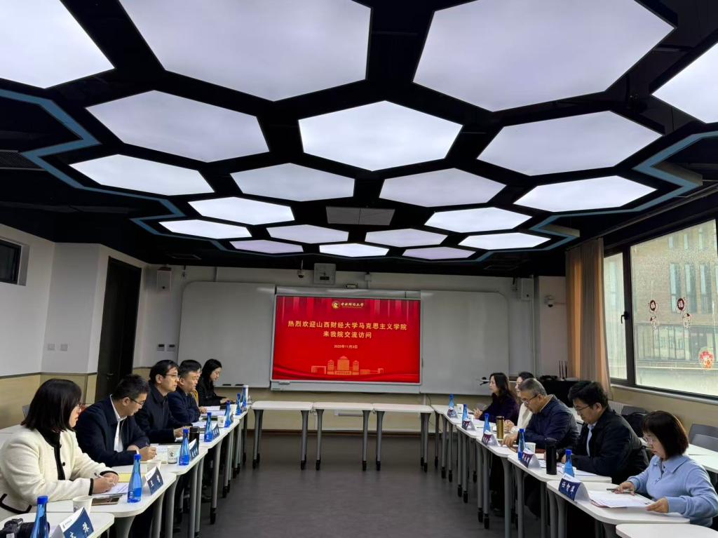 2025年11月3日,山西财经大学beat365英国官方网站院长杨茂林、副院长郭永园率队到访beat365英国官方网站,围绕学科建设、思政课教学、师资培育、实践教学、硕博生培养以及研究生就业等方面的工作开展交流研讨。黄刚院长主持座谈会,学院党委书记李爱民、副院长赵付科、中国近现代史纲要教研室党支部书记孙敏、组织员王哲、学生工作办公室主任刘明月、办公室科员齐豫等参加会议。