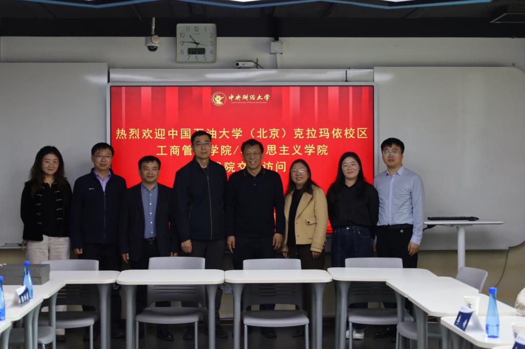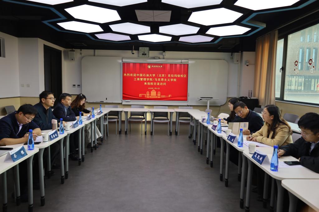 2025年11月21日,中国石油大学(北京)克拉玛依校区工商管理学院/beat365英国官方网站党委书记杨东杰一行来访beat365官网,双方围绕“十五五”规划编制、“大思政课”建设、数智化改革、大中小学一体化建设等方面工作开展交流研讨。院长黄刚教授主持座谈会,学院党委书记李爱民、副院长简臻锐、习近平新时代中国特色社会主义思想概论教研室青年教师张玲蔚等参加会议。