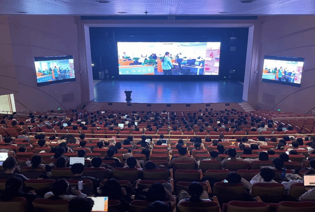2024年4月17日下午,由教育部指导的全国首部思政课教师题材喜剧故事片《我要当老师》在beat365英国官方网站沙河校区千人教室点映。beat365英国官方网站副校长朱凌云、beat365英国官方网站师生代表、辅导员代表、教工代表、宣传部工作人员及形势政策课同学们近千余人参加了本次融合式形势与政策课的观影活动。