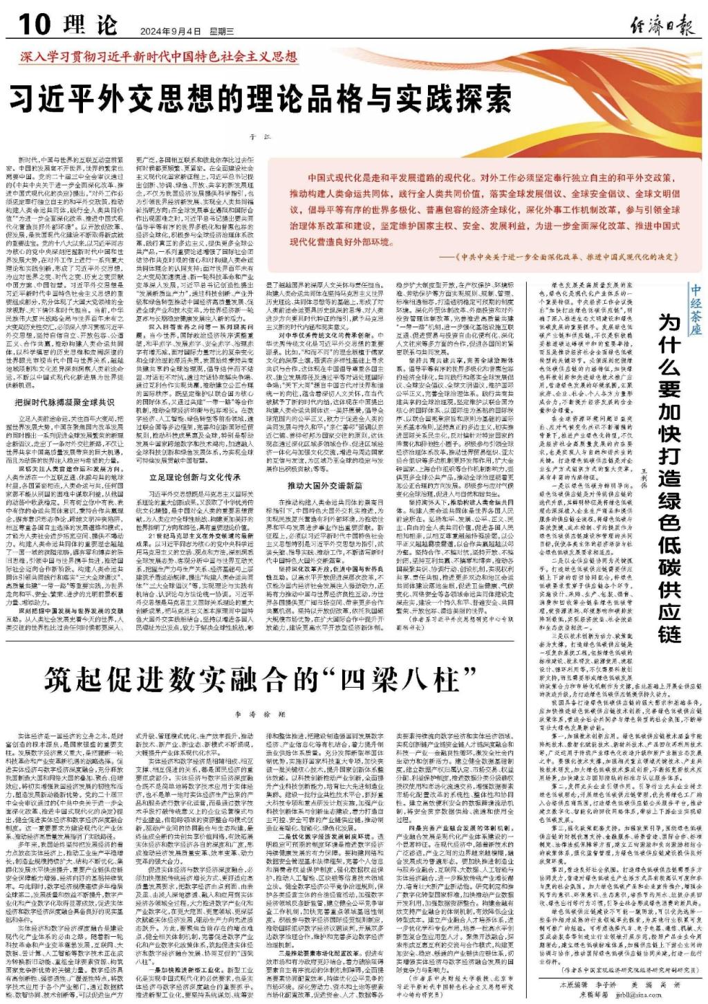 9月4日,《经济日报》理论版刊发北京市习近平新时代中国特色社会主义思想研究中心特约研究员、beat365英国官方网站李涛教授和徐翔教授的署名文章《筑起促进数实融合的“四梁八柱”》。