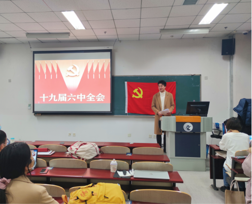 其次,朱倚岑还与硕士支部同志们就公报中的新表述和新论断展开了学术探讨。例如十九届六中全会的历史意义、习近平新时代中国特色社会主义思想是不是马克思主义中国化的第三次飞跃等等,引发了同志们的深入思考。此外,朱倚岑讲述了自身关于公报中文化建设成就的深切感触,他从自身成长经历出发,与大家分享了他对“我国意识形态领域形势发生全局性、根本性转变”,以及“全党全国各族人民文化自信明显增强,全社会凝聚力和向心力极大提升”等公报原文阐述所展现的学术与时代意义。